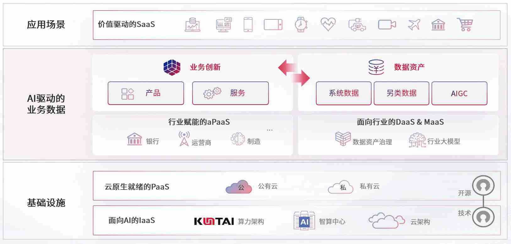 数字时代,,,,围绕企业数字化转型的关键要素,,,太阳成tyc33455cc数码开创性的提出数云融合战略和技术体系框架,,,着力在云原生、、数字原生、、、、AI原生和信创产业上架构产品和服务能力,,为处在不同数字化转型阶段的快消零售、、汽车、、、金融、、、、医疗、、、、政企、、、、教育、、、运营商等行业客户提供泛在的敏捷IT能力和融合的数据驱动能力,,构建跨界融合创新的数字业务场景和新业务模式,,,助力企业级客户建立面向未来的核心能力和竞争优势,,,,全面推动社会的数字化、、、智能化转型升级。。。。