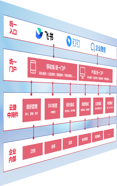 对协作平台提供支持服务,,支持企业应用与协作平台对接,,包含组织同步、、、消息集成、、、、待办集成等。。。。支持目前主流的协作平台:钉钉、、、、企微和飞书。。。。